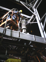 On Monday morning we were able to get the additional 1,000 lbs. of dry ice that we needed. It would be delivered mid-afternoon. The site manager wanted us back for 6PM so we could blast during the evening. On Monday night we went up in a boom lift to better reach all sides of the potheads. We completed the dry ice blasting of the remaining two potheads just after 4:30AM. We were all packed up and ready to go at 6:15AM. By 6:30PM we were back in Worcester after several days working on the emergency project.