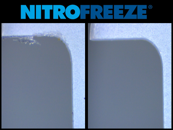 Nitrofreeze® Deflashing and Deburring process adds value while reducing costs to customers by eliminating the need for hand trimming. Highlighted below is an actual customer part that has successfully undergone the Nitrofreeze® process.